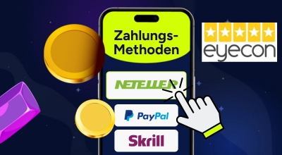 Wir berücksichtigen Eyecon Casinos, die Ein- und Auszahlungen per Mastercard, Visa, Banküberweisung, PayPal, Kryptowährungen, Skrill und Neteller ermöglichen. Außerdem prüfen wir, ob die Plattformen mehrere Aktionen für neue und bestehende Spieler mit fairen Umsatzbedingungen anbieten.