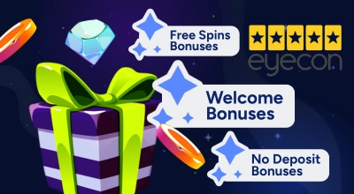 Reliable Eyecon casinos usually have a variety of casino offers. Players should pay attention to the bonus policy and terms to learn about the max bet, spin value, validity period, and minimum deposit.