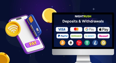 Nightrush also chooses match bonuses that players can use to play the most popular casino games, including slots, roulette, blackjack, poker, and live dealer games. Moreover, we find sites with many secure casino payment methods that can make qualifying deposits for such bonuses.