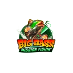 Une machine à sous sur le thème de la pêche avec des tours gratuits, des symboles wild, des multiplicateurs et des symboles scatter, la Big Bass : Mission Fishin’ machine à sous fait partie de la très populaire série Big Bass. (Un poisson vert tient une canne à pêche dans le logo du jeu Big Bass : Mission Fishin’.)